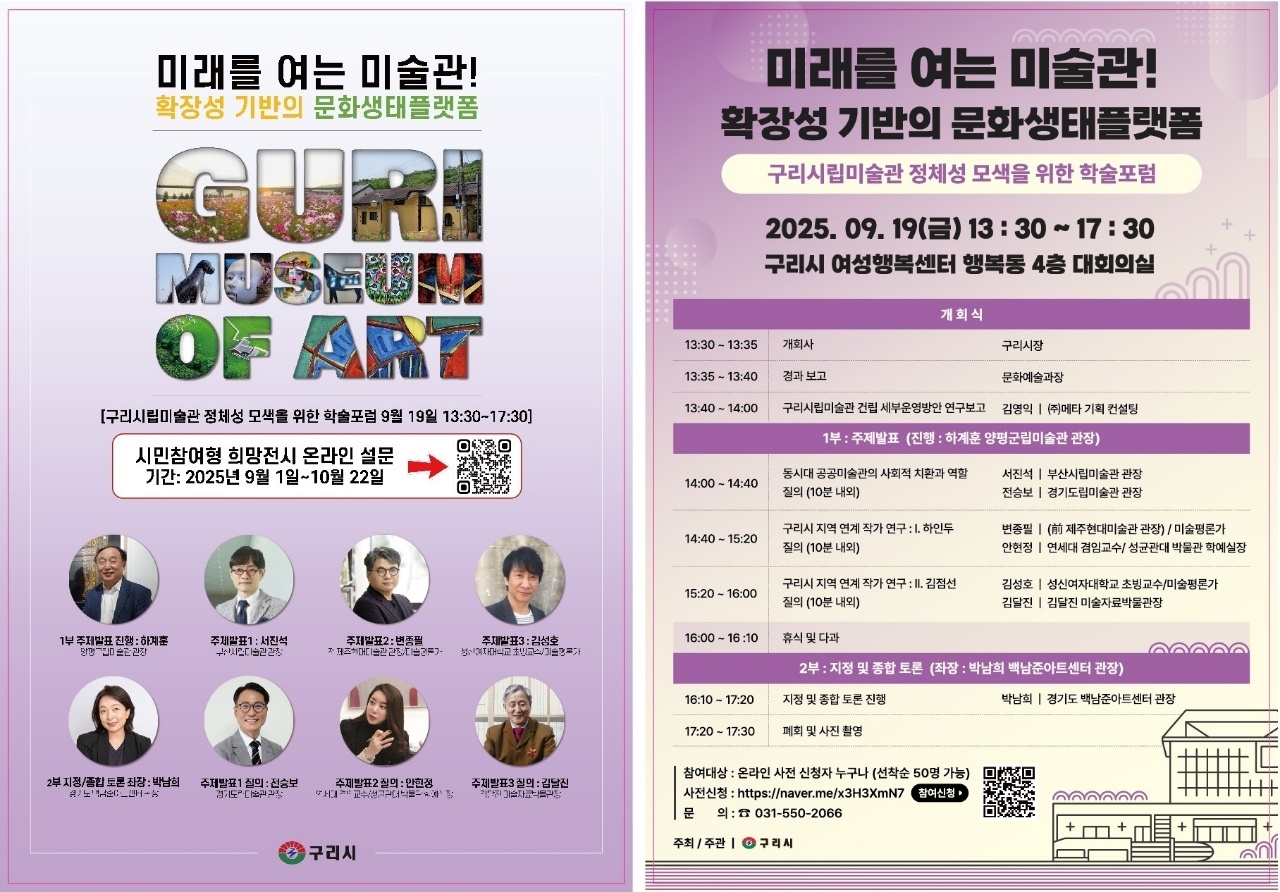 2025³â 9¿ù 19ÀÏ ±¸¸®½Ã ¿©¼ºÇູ¼¾ÅÍ Çູµ¿ 4Ãþ ´ëȸÀǽǿ¡¼ <±¸¸®½Ã¸³¹Ì¼ú°ü Á¤Ã¼¼º ¸ð»öÀ» À§ÇÑ ÇмúÆ÷·³>À» °³ÃÖÇÕ´Ï´Ù. ¸¹Àº °ü½É ¹Ù¶ø´Ï´Ù.